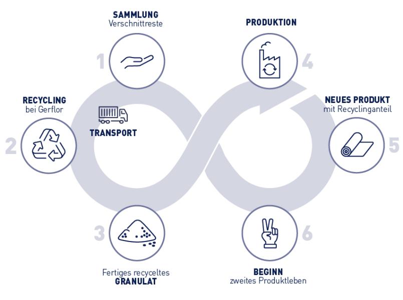 - Zuführung der gesammelten und verarbeiteten Materialien an die Gerflor Produktionsstätten