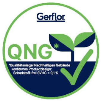 Die Bodenbeläge sind absolut emissionsarm, frei von Formaldehyden, Schwermetallen, Lösungsmitteln und hormonaktiven Substanzen. Damit steht einer Förderung mit QNG (Qualitätssiegel Nachhaltiges Gebäude) nichts im Wege.