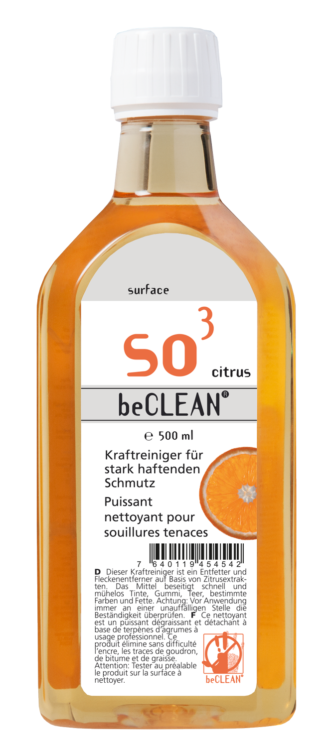 beCLEAN® so3 ist ein Entfetter und Fleckenentferner auf Basis von Zitrusextrakten
